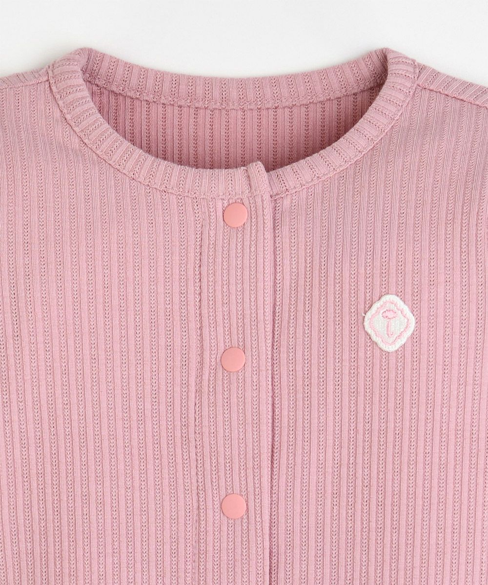 【ルームウェア】ピンクカラーアイレット長袖トップス&パンツ