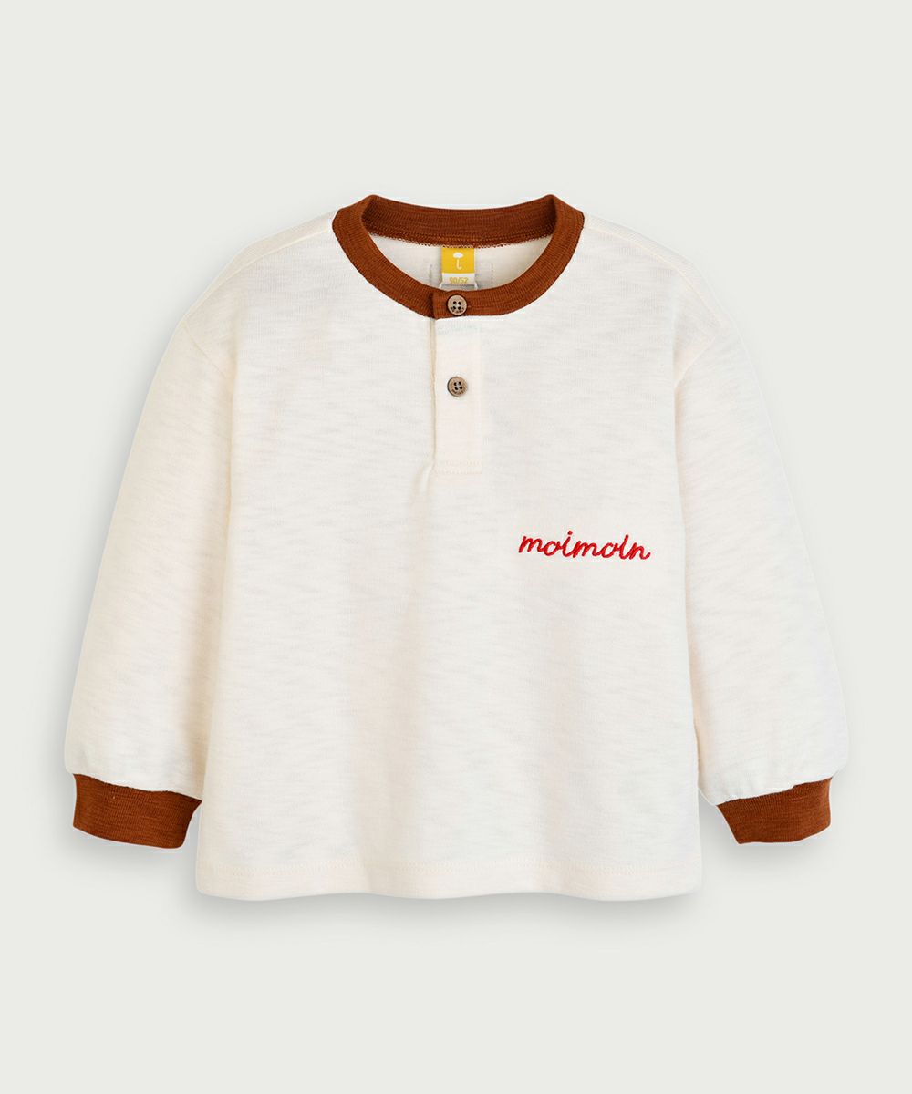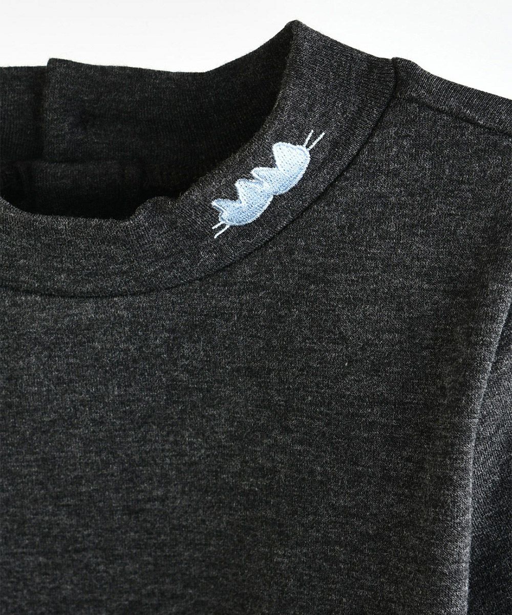 【SOFT&】キャット刺繍モックネック長袖Tシャツ
