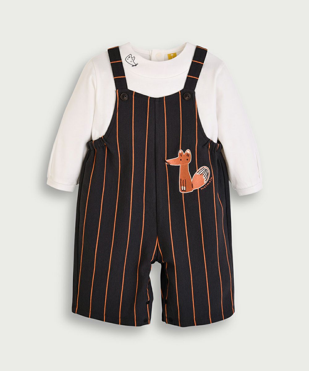 【2点セット】フォックスストライプ柄カバーオール&帽子