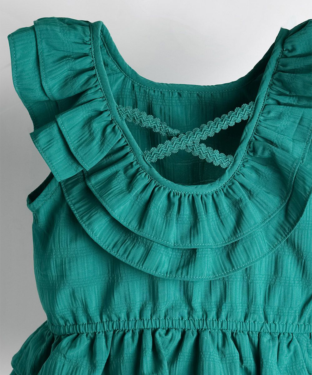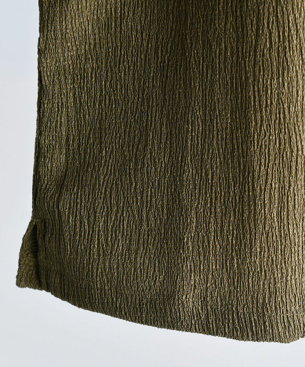 【セットアップ】グリーンピンタックカラーノースリブトップス&パンツ
