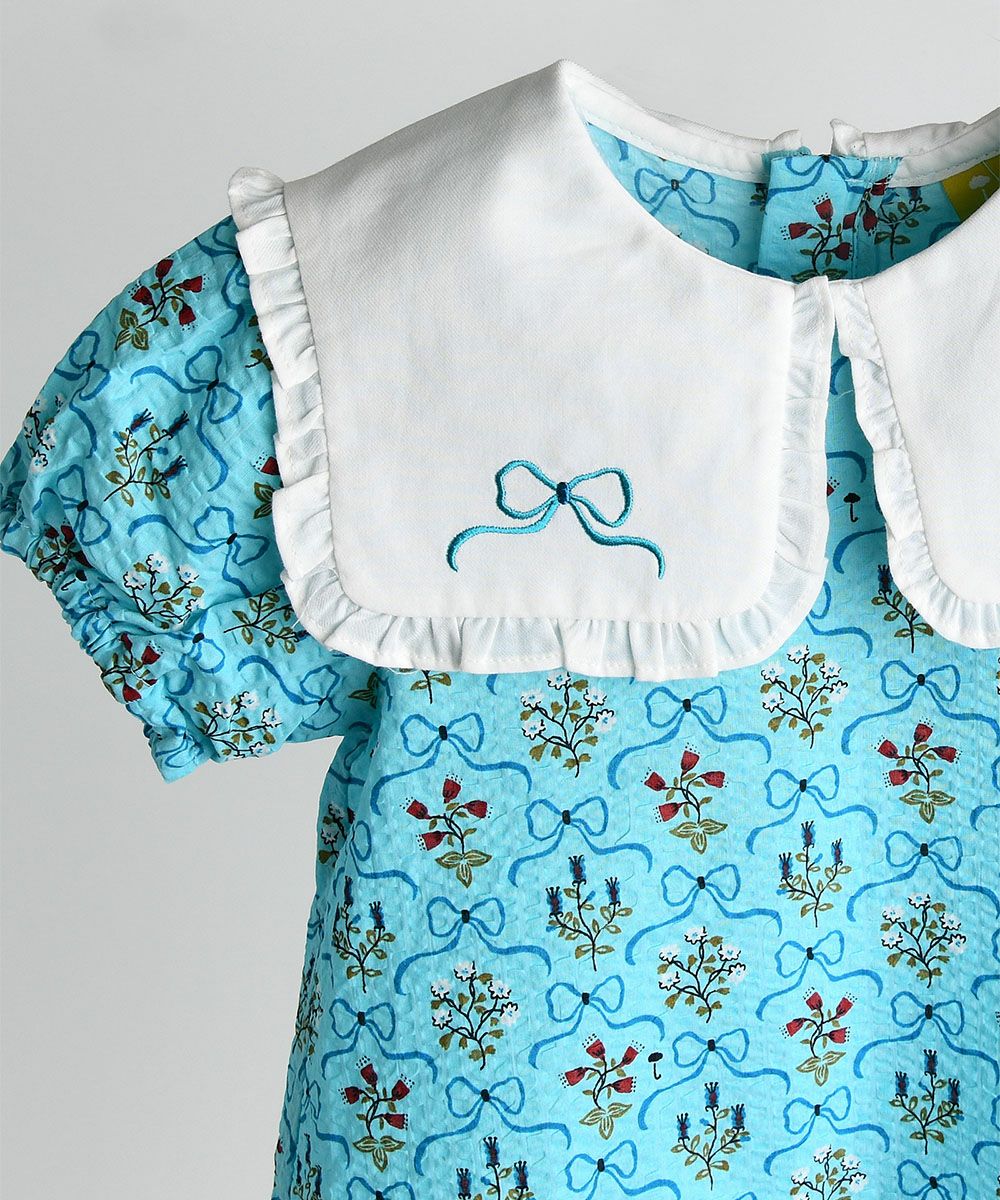 リボンフラワー襟ポイントワンピース