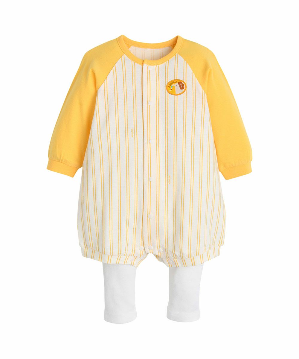 【2点セット】ベアストライプ長袖カバーオール&帽子