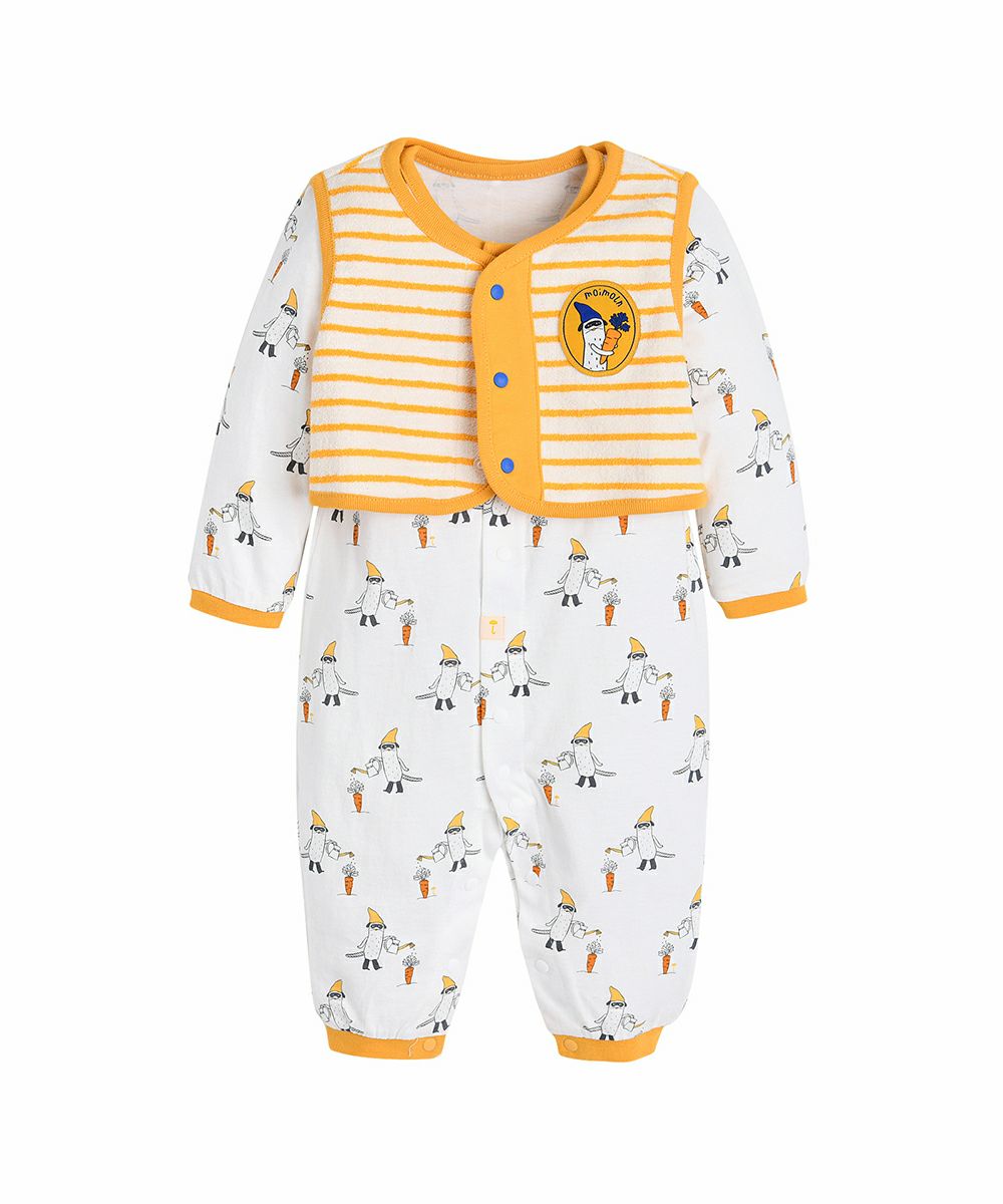 【2点セット】クローバー長袖カバーオール&ビックベアベスト