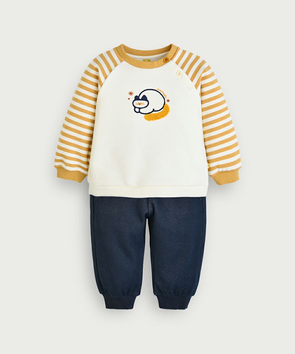 【セットアップ】キャット配色起毛長袖トップス&パンツ